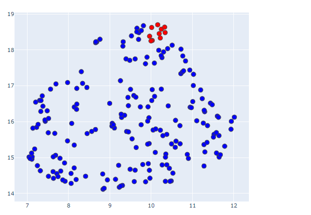 UMAPは、そんな高次元空間上の異なる点同士の「近さ」を定義し、低次元空間上でも極力高次元空間上での近さと極力同じになるよう配置してくれる次元圧縮手法です。